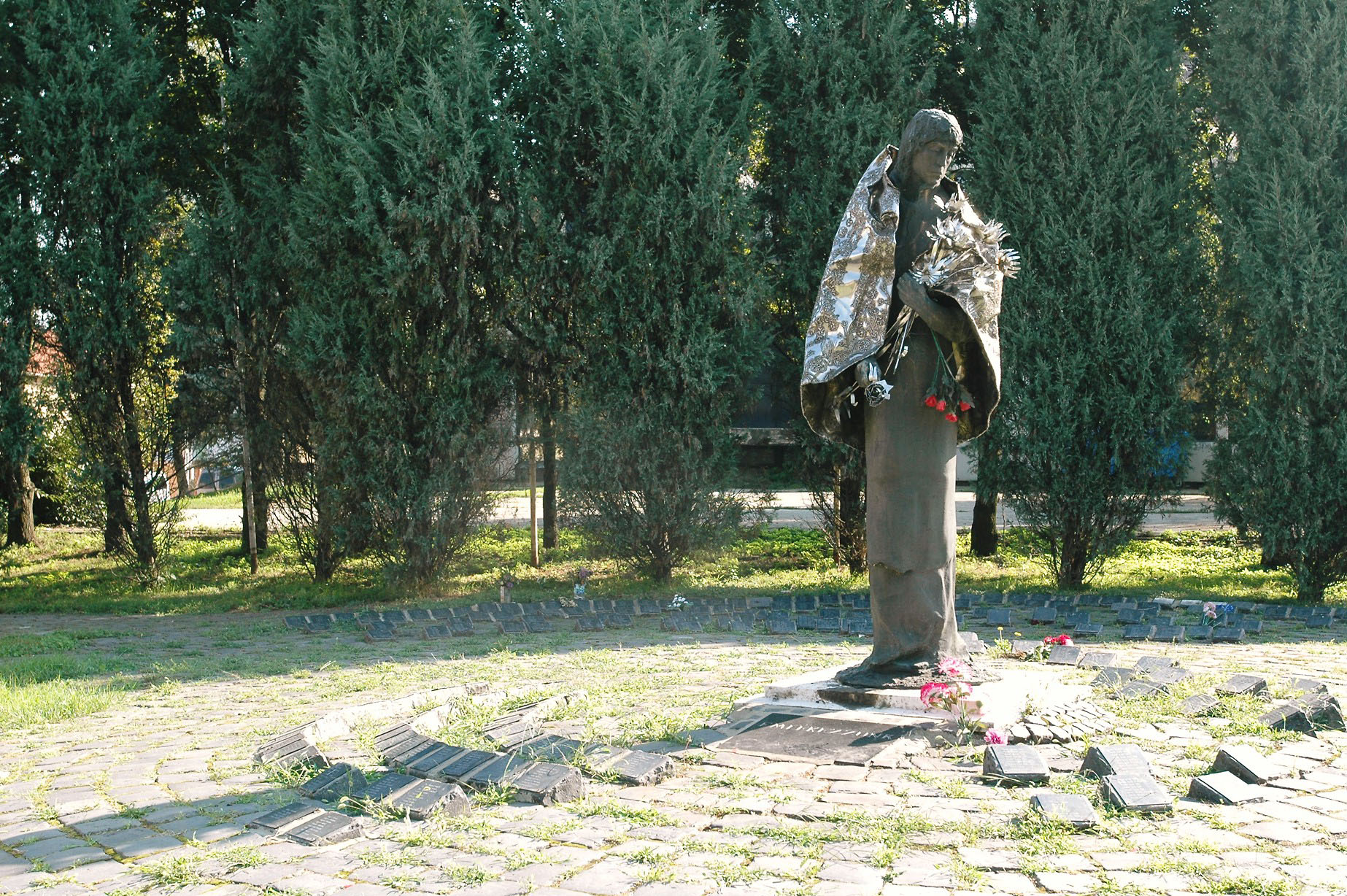 Behind the building there is a Monument of the Second World War made in 1991 by the sculptor Imre Varga. The statue represents a conventional map of Europe, above we can see a woman in deep sorrow and mourning and copper plaques engraved with the names of the inhabitants died in the Second World War.